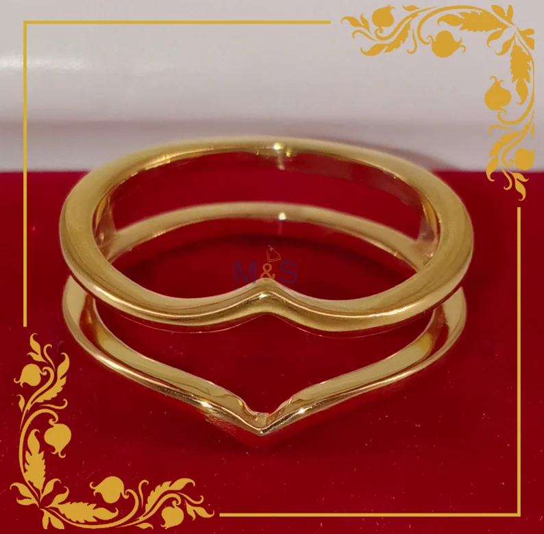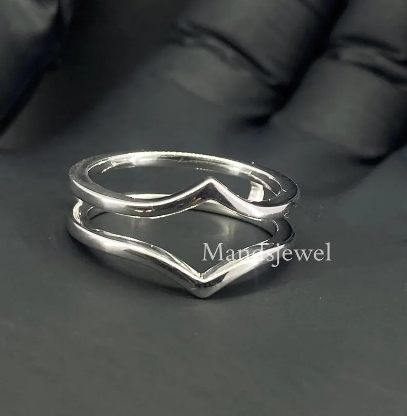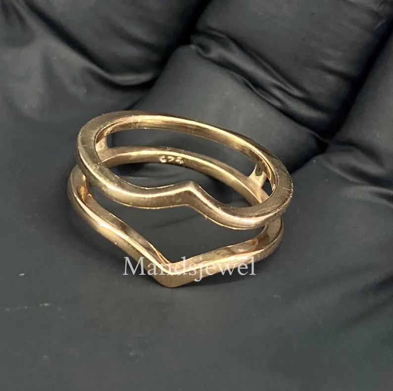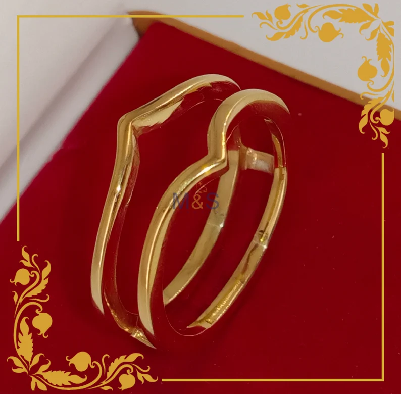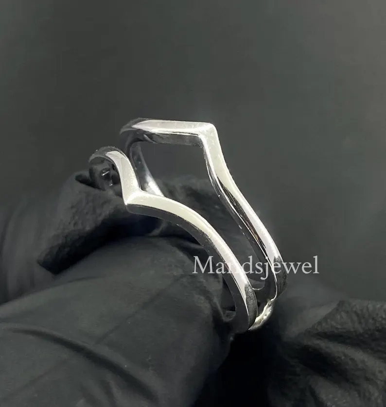 14k Yellow gold Finish Promise Anniversary band ring Curved wedding band Vintage marquise cut V shape band Antique stacking enhancer ring.