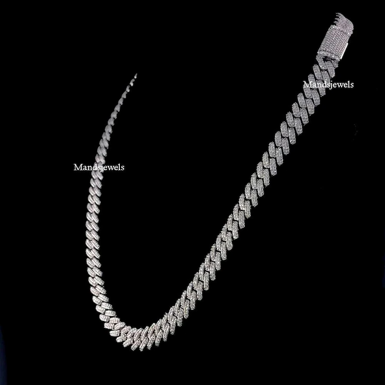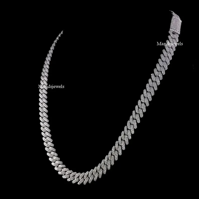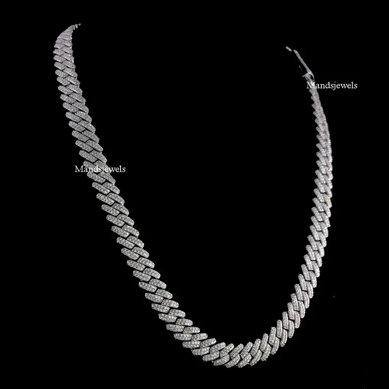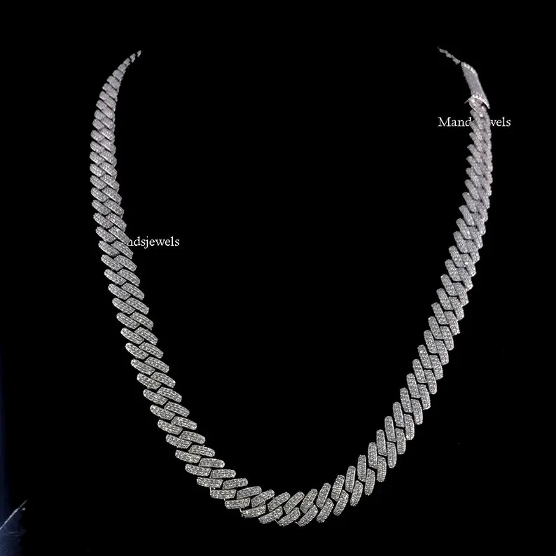 18″ inch Iced out Moissanite 12mm Cuban Link Solid Handmade Chain in 925 Sterling Silver Real Moissanite Necklace Miami.