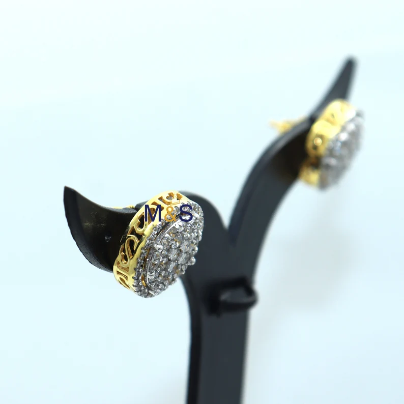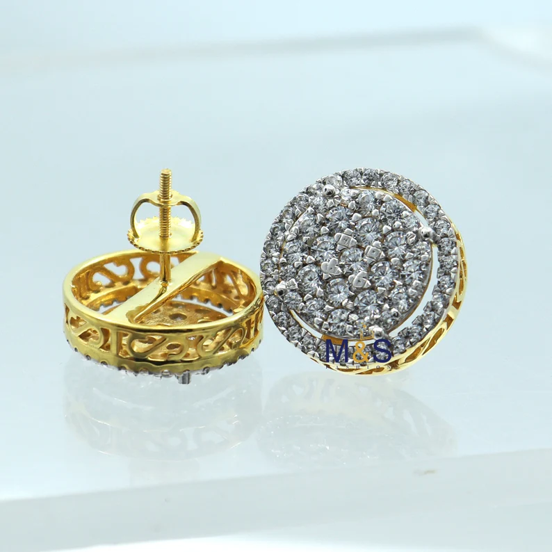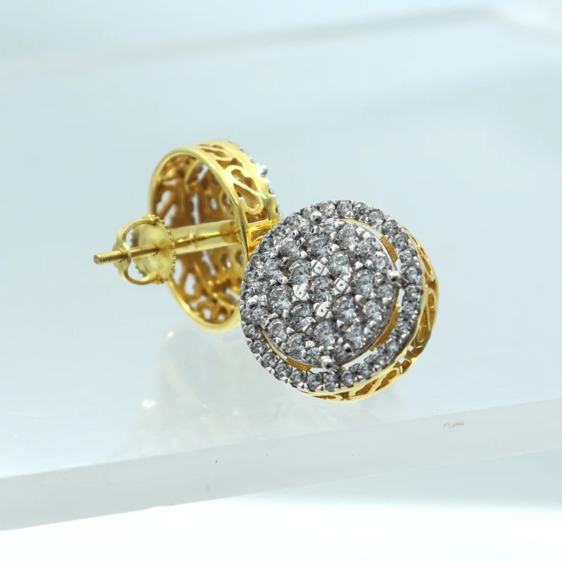 2.25 Ct Round Cut Simulated Diamond/ Real Moissanite Cluster Prong Round Shape Stud Earrings 14K Yellow Gold Finish Women’s.