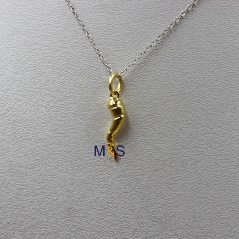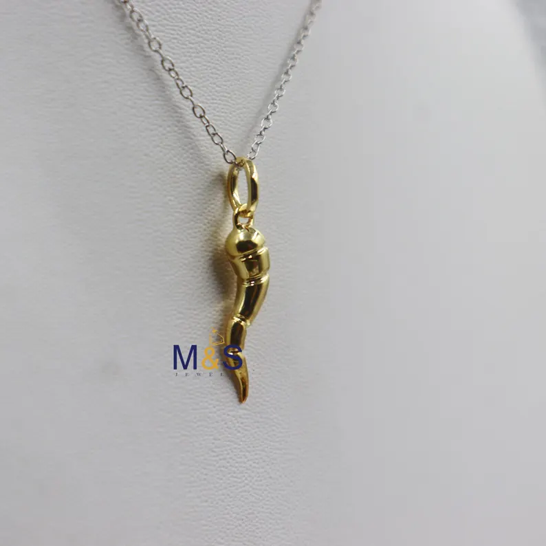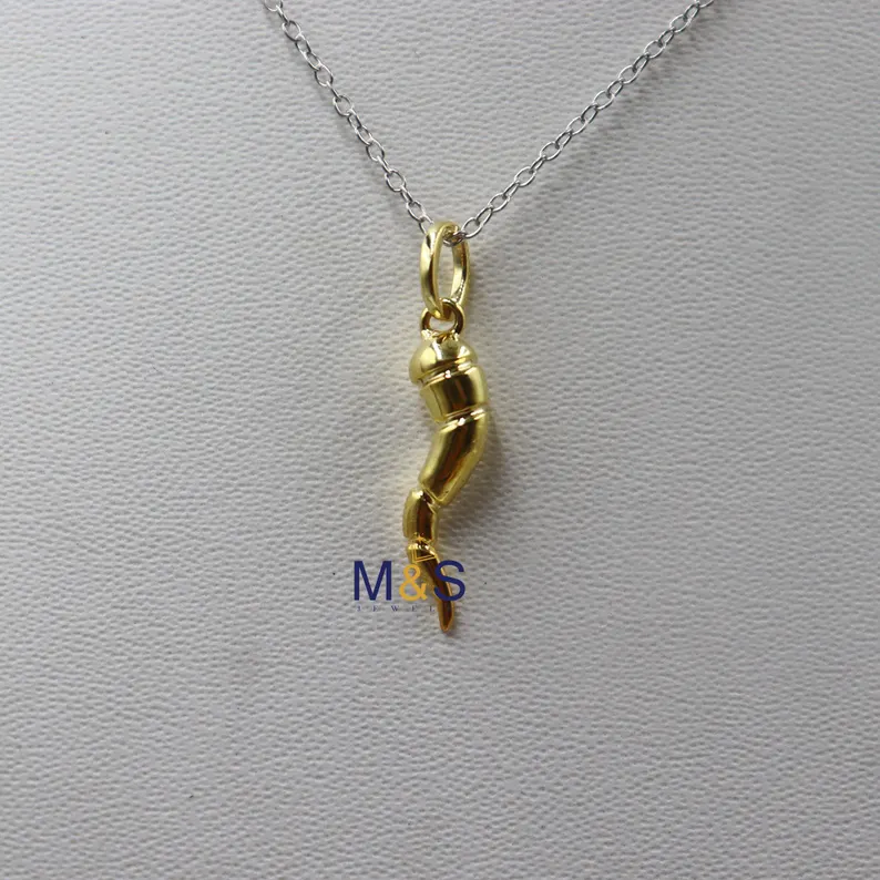 14k Yellow Gold Plated Cornicello Italian Horn Pendant Twisted Italian Horn Cornicello Charm 25mm Heigh Necklace Charm 18.