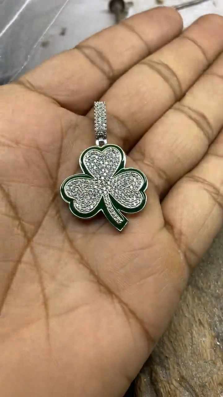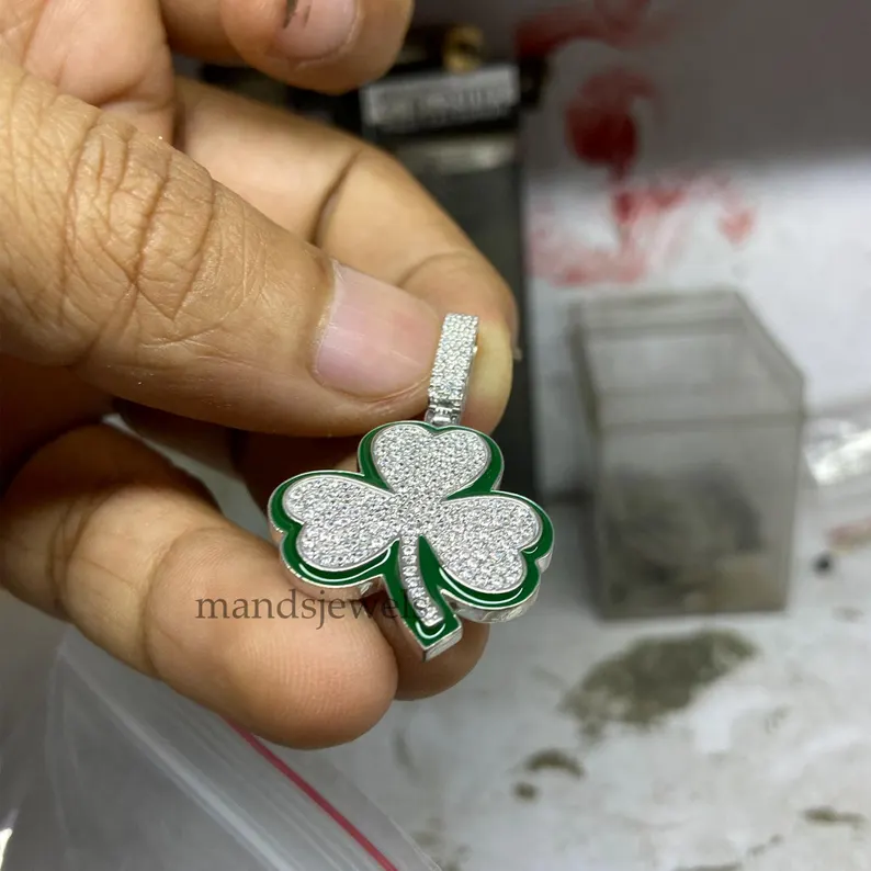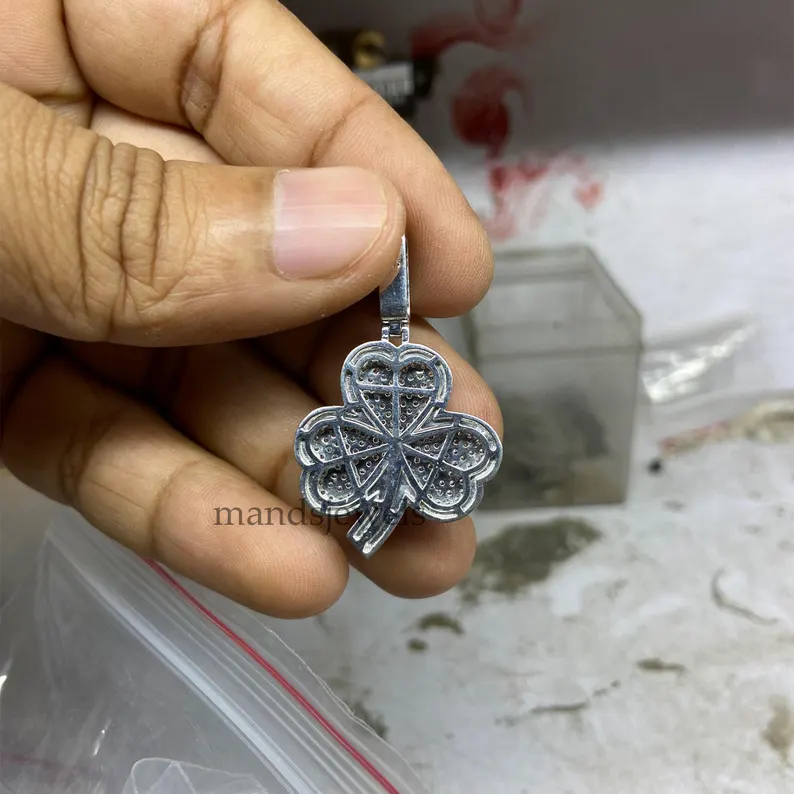 14K White Gold Plated Real Moissanite 1.70ct Three Leaf Clover Pendant For Unisex.